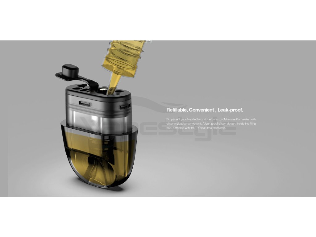 Náhradní Pod Cartridge pro elektronickou cigaretu Aspire Minican+ o objemu 3ml s integrovanou žhavící hlavou s odporem 0,8ohm.