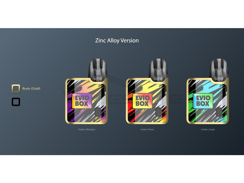Kompaktní Pod elektronická cigareta, která se vejde pohodlně do kapsy nabízí dostatečný výkon a prvotřídní čip s technologií AST. Joyetech Evio Box nabízí vysokou rychlost žhavení už za 0,001 s, rychlé nabíjení pomocí moderního USB-C konektoru, dvojí způsob spínání potahu, a to jak plně automatický, tak manuální pomocí tlačítka. O samotný výkon s postarají hned tři režimy intenzity žhavení. Kapacita baterie 1000mAh, objem Cartridge 2ml s dvojitým Airflow systémem, rozměry 75 x 49 x 14 mm, 2x žhavící hlava Joyetech EN v SETU. Joyetech EVIO Box je vhodný jak pro klasické MTL šlukování, tak i pro utaženější DL, kdy je pára vdechována přímo do plic. Barevné provedení Black Jungle.