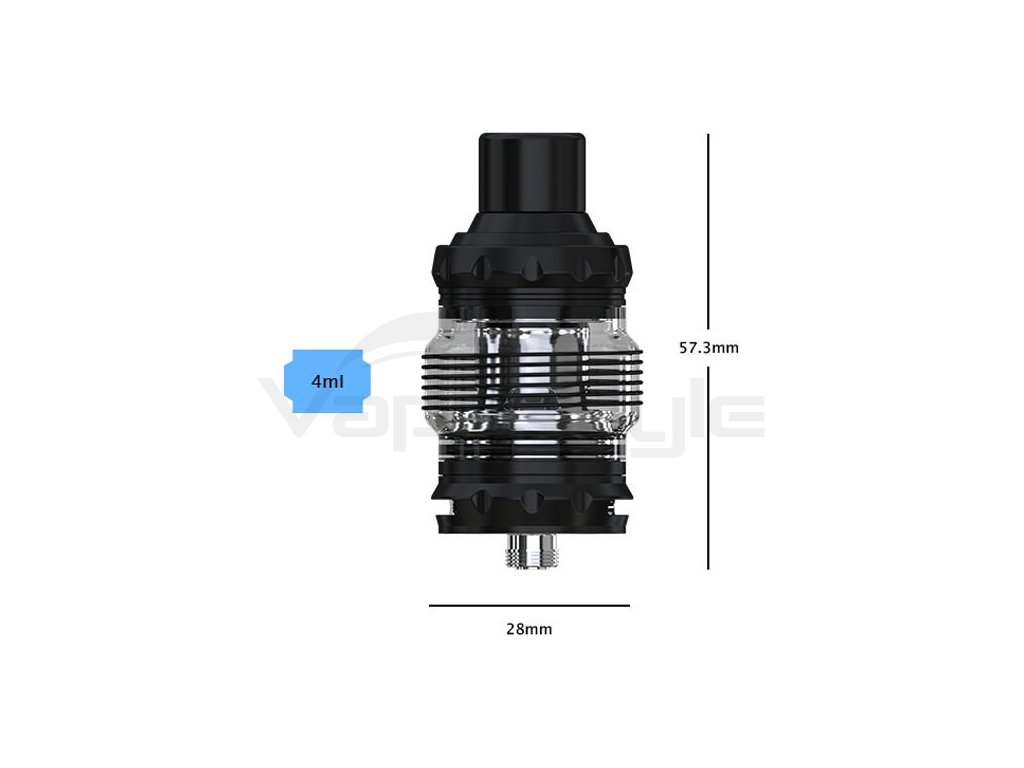 Objem tanku činí 4 ml. Díky této obrovské kapacitě nebudete muset řešit časté doplňování a užijete si dlouhé hodiny pohodového a nerušeného vapování. V případě nutnosti plnění vás potěší přítomnost jednoduchého vrchního systému s dětskou pojistkou. Jemně nadzdvihněte vrchní uzávěr a následně ho vysuňte do strany. Poté už můžete začít plnit e-liquid až do maximální kapacity tanku. Proces zabere jen několik málo vteřin.