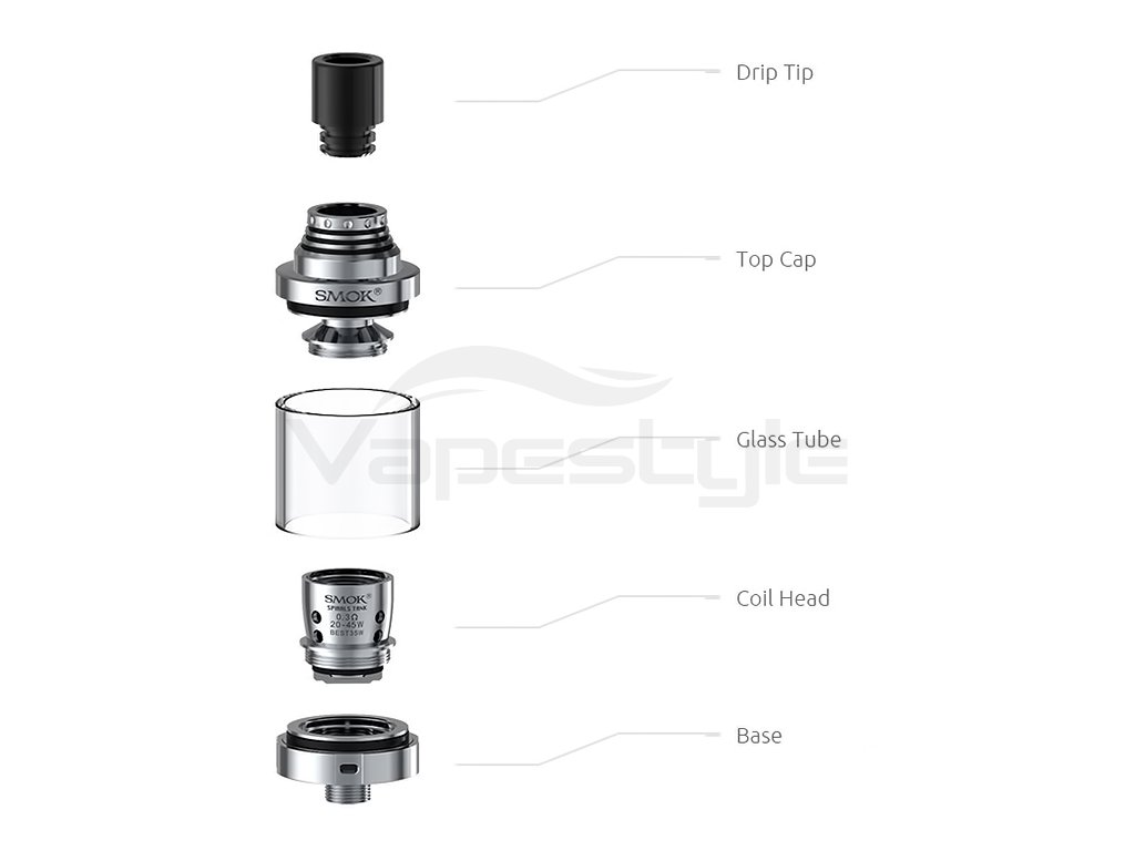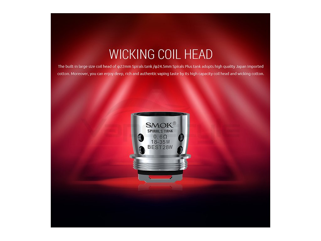Smoktech Spirals Clearomizer se vyznačuje svojí skvělou kouřivostí a autentickou chutí liquidu. Využívá systém horního plnění (po odšroubování vrchní části, plníte liquid přímo do těla nádržky) o objemu 2ml. Celý Clearomizer je vyroben z nerez oceli a Pyrexu (laboratorní sklo). Spodní regulace přívodu vzduchu Vám zajistí optimální kouřivost. Spirals představuje své vlastní žhavicí hlavy Dual Core o odporu 0.6ohm (18-35W), 0.3ohm (20-45W) a RBA pro tvorbu vlastních spirálek.