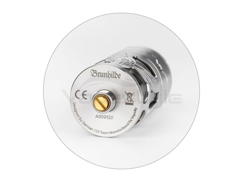 Chybí vám na trhu MTL atomizér s obrovskou kapacitou tanku? Špičkový atomizér Vapefly Brunhilde se po uvedení své DL verze představuje také ve verzi MTL pro všechny milovníky klasického šlukování. Stejně jako verze pro přímé potahování do plic, je i tento atomizér navržen německou vaperskou skupinou známou pod názvem Germany 103 Team. O výrobu atomizéru se potom postaral právě proslulý výrobce Vapefly. Atomizér na první pohled zaujme zejména moderním dílenským zpracováním a luxusními materiály. Tělo je vyrobeno z kvalitní nerezové oceli a působí robustním a bytelným dojmem. Obrovskou výhodou jsou potom také rozměry. Délka atomizéru s náustkem činí 59,5 mm a průměr se zastavil na 23 mm. Díky tomu si bude skvěle rozumět s drtivou většinou modů na dnešním trhu. Ve spodní části se potom nachází závit typu 510 s pozlaceným a regulovatelným centrpinem, díky čemuž je atomizér vhodný také na hybridní mechanické mody.