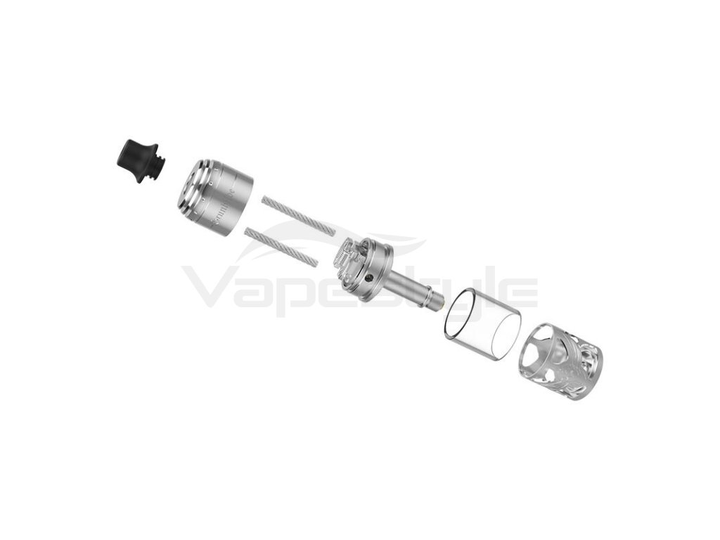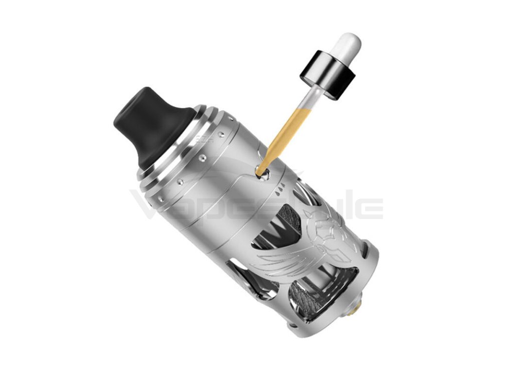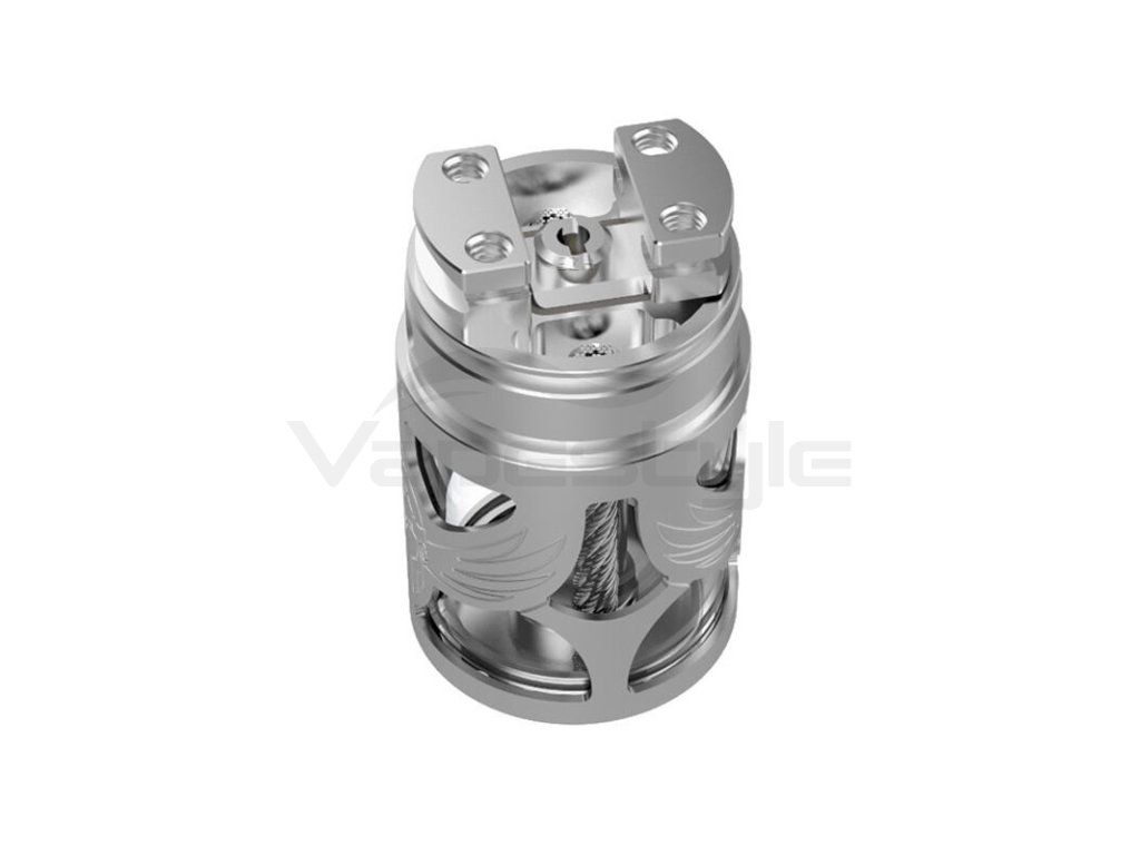S velice specifickým rozložením a designem se potom setkáte ve vnitřní části atomizéru. Jedná se o tzv. top coiler, jehož základna je umístěna ve vrchní části atomizéru nad samotným tankem na e-liquid. Do této základny je možné instalovat celkem jednu spirálku dle vlastního výběru. Základnu tvoří dva sloupky a výsledná instalace a uchycení jsou nesmírně jednoduché. Hravě si s ní poradí také začátečníci v oblasti DIY vapingu. Tato vrchní základna je následně zásobena e-liquidem pomocí speciálních nerezových lanek na způsob meshe. Vaše vata tak bude mít neustále dostatek e-liquidu díky kvalitní přenositelnosti e-liquidu pomocí těchto kvalitních lanek. Samotný tank ve spodní části potom nabídne obrovský objem. Můžete do něj doplnit až 5 ml e-liquidu a užívat si dlouhé hodiny pohodového vapování bez nutnosti plnění. Plnící otvor pro doplnění tanku najdete v boční části atomizéru. Otvor si poradí také s průměrově širšími kapátky, které můžete znát například z oblíbené série lahviček Chubby Gorilla.