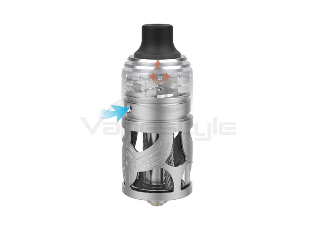 Přímo pod spirálkou se nachází otvor pro vstup vzduchu do atomizéru. Díky umístění pod spirálkou je spirálka ofukována efektivně a vždy tak dosáhnete perfektní chuti. Jelikož se jedná o MTL atomizér, připravil si výrobce široké možnosti nastavení tohoto přívodního otvoru. V balení tak najdete redukční sadu tvořenou šesti šroubky s různými průměry otvoru pro zvolení optimální tuhosti potahu. Na výběr budete mít průměry 0,9 mm, 1,2 mm, 1,4 mm, 1,8 mm a dva širší průměry 2,1 mm a 2,5 mm.