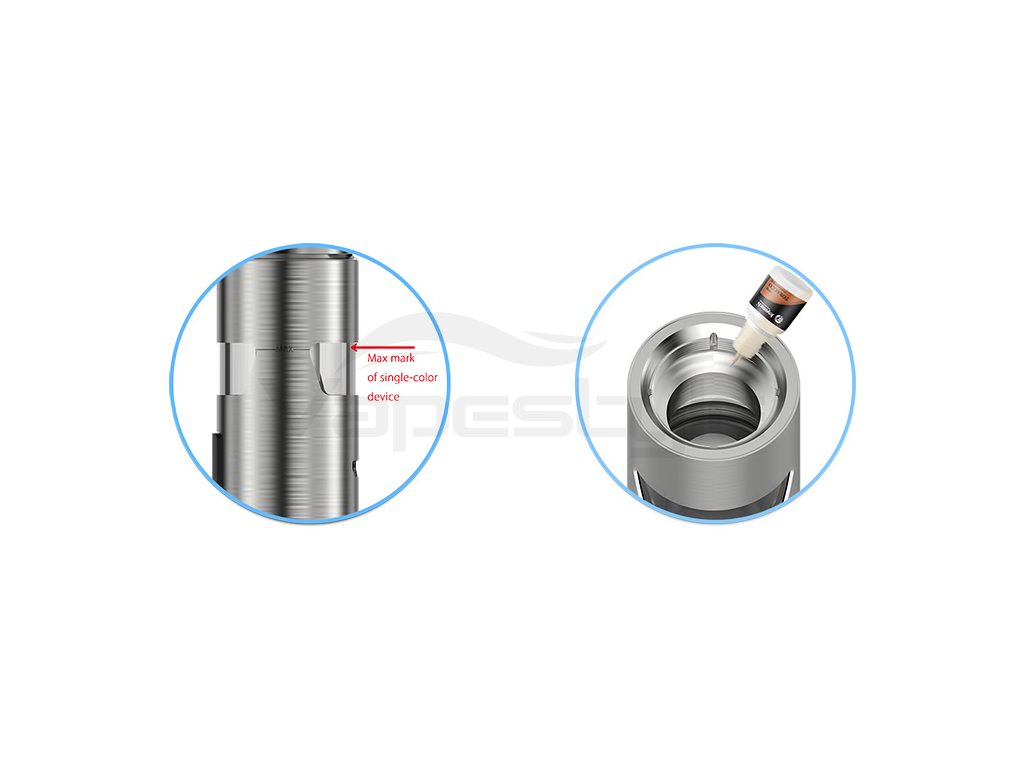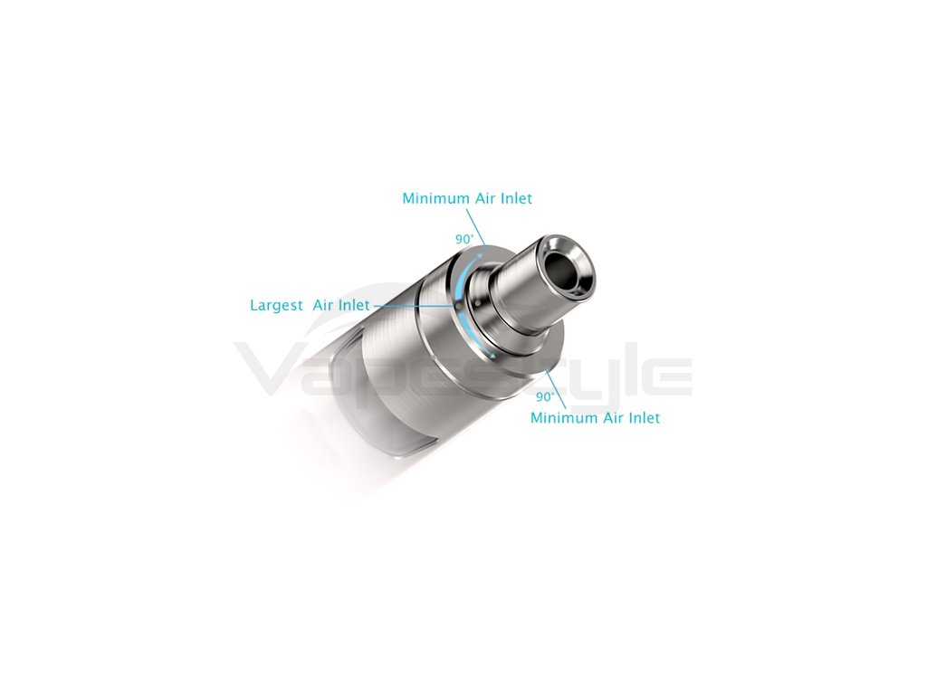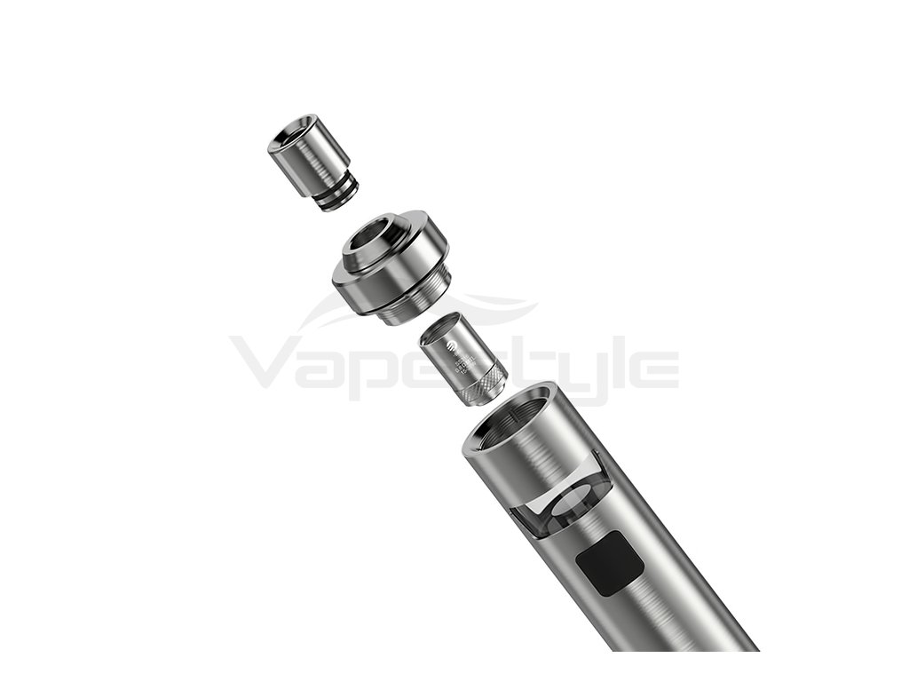 Joyetech eGo AIO D22 je jednoduchá a výkonná ALL in ONE elektronická cigareta, která svými vlastnostmi uspokojí jak úplné začátečníky, tak i zkušené uživatele, kteří si chtějí prožít vaping bez jakéhokoli nastavování (výkon je nastavován automaticky v závislosti na zvoleném odporu atomizeru). Nyní se Vám nemůže stát, že by Clearomizer protékal na baterii, protože Clearomizer je neoddělitelná součást baterie a odnímatelná je pouze vrchní část pro plnění (až 2ml) a výměnu atomizeru. Vrchní odnímatelná část je opatřena dětskou pojistkou (ochrana před nechtěným otevřením). Atomizer již není ve spodní části, jako u ostatních clearomizerů, ale nachází se pod náustkem, kde je i regulace přívodu vzduchu.