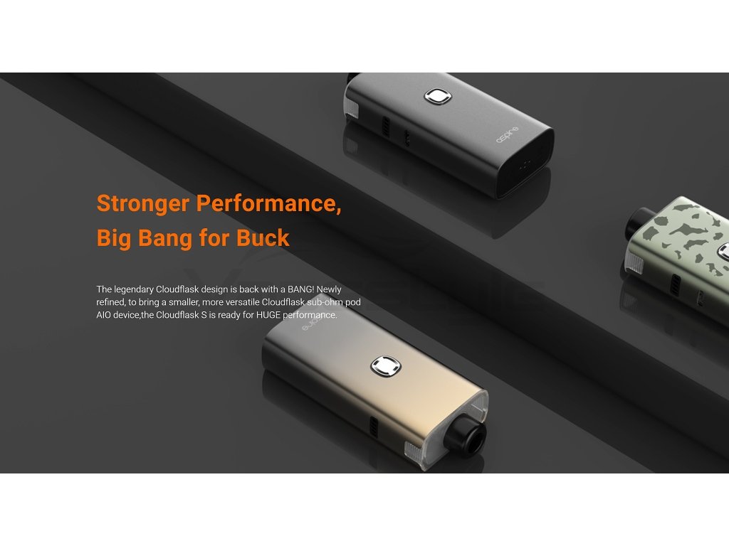 Cloudflask S je vylepšením revolučního sub-ohmového pod systému Aspire Cloudflask. Jednoduchý a snadno použitelný pod systém s vyměnitelnými žhavícími hlavami, který je navržen tak, aby produkoval ještě více páry. Cloudflask S disponuje integrovanou interní baterií s kapacitou 2000 mAh. Tato vysoká kapacita zaručuje bezproblémové celodenní vapování. Objem Pod cartridge 2ml, rychlé USB-C nabíjení, LED indikace stavu nabití. Bezpečnostní ochrana čipové sady Aspire ASP, 2x žhavící hlava v SETU. Tato cigareta je vhodná pro DL vapování.