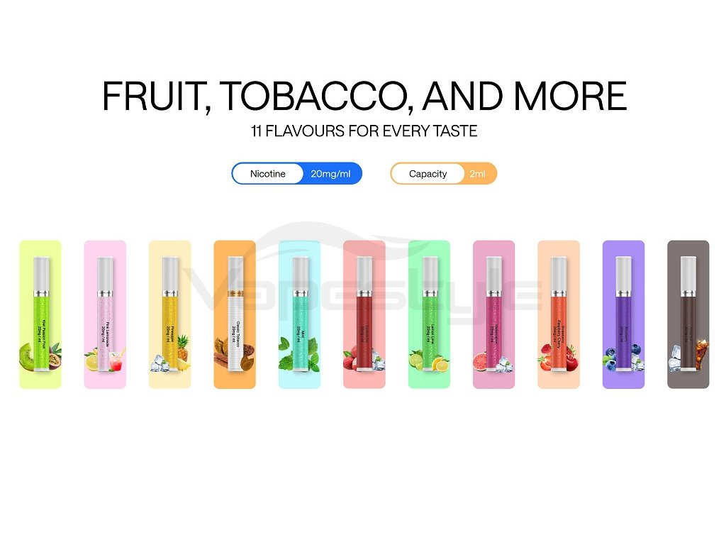 - 11 dostupných předplněných příchutí v 2ml cartridgích