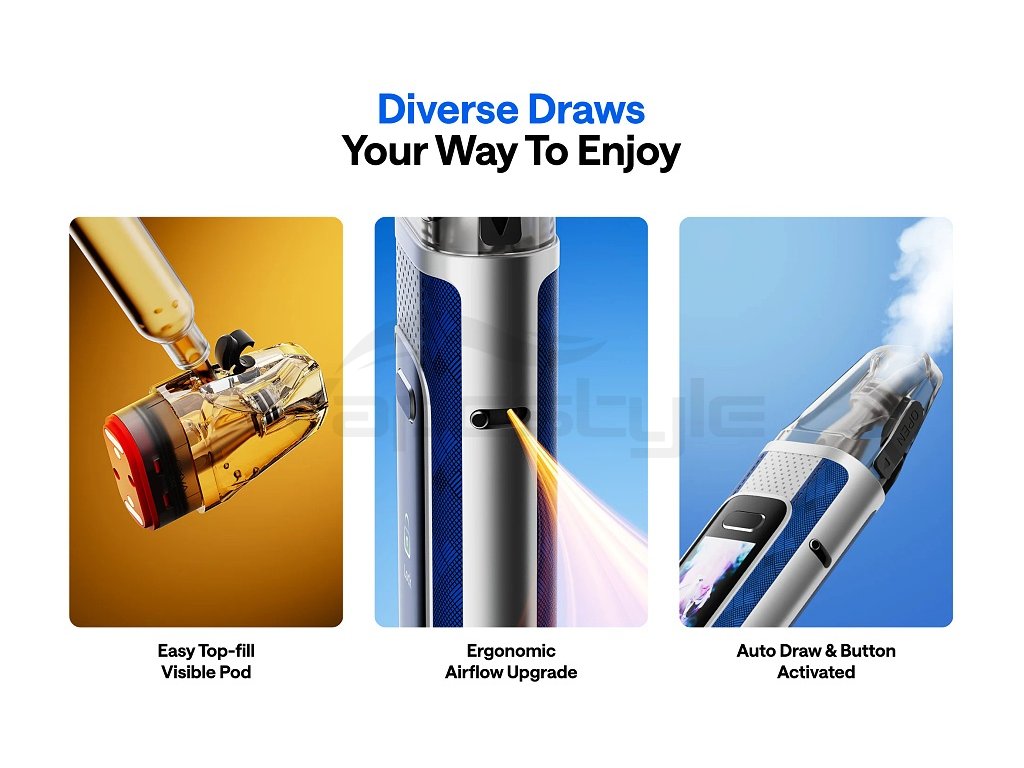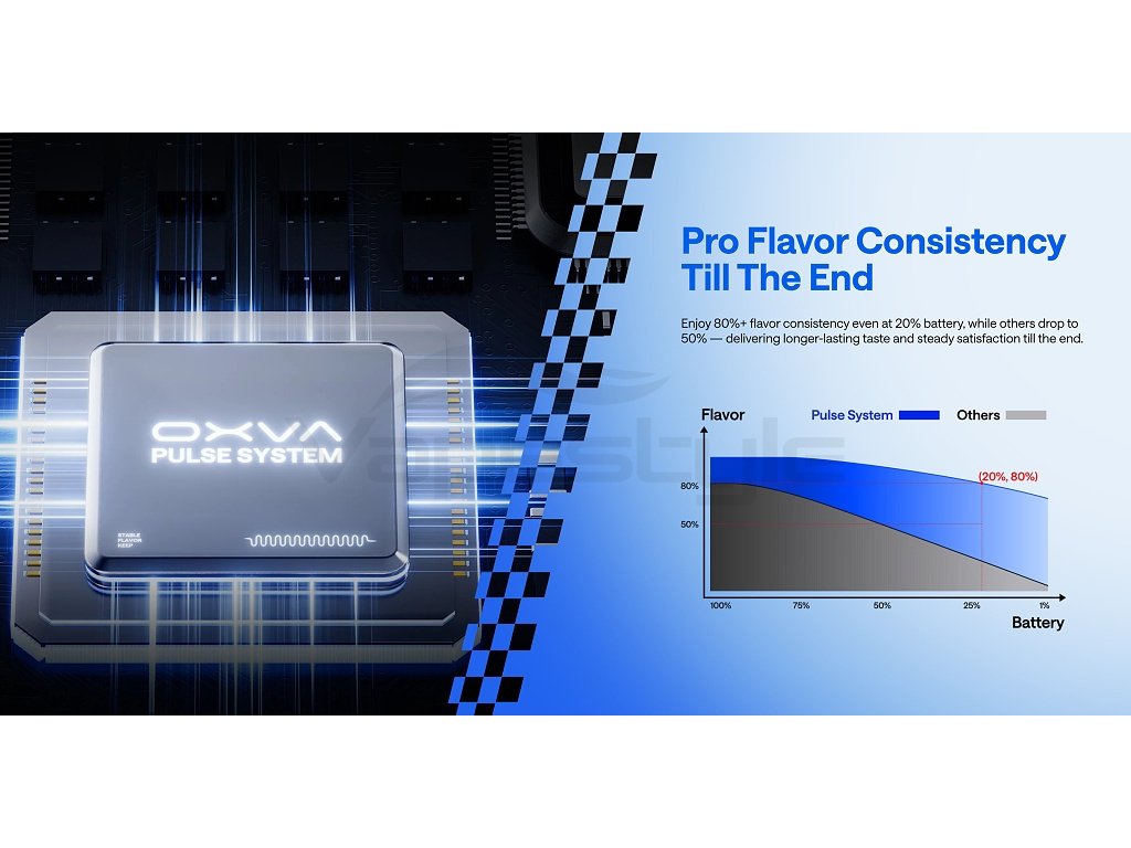 Pulse SystemRevoluční Pulse System s inteligentním Photon čipsetem zajišťuje stabilní výstupní výkon od 5 do 30 wattů napříč celým rozsahem nabití baterie. Pokročilá pulzní technologie udržuje konzistenci chuti na úrovni 80% i při 20% zbývající kapacity baterie, což eliminuje slabé potahy typické pro běžná zařízení. |