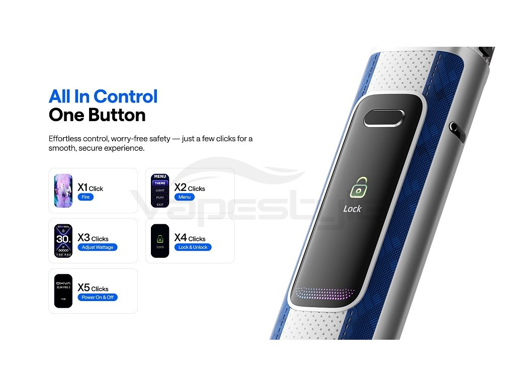 Prémiový designOXVA XLIM Pro 3 disponuje robustní konstrukcí z vysoce kvalitní zinkové slitiny v kombinaci s odolným PCTG plastem pro pody. Klasický zploštělý pero-stylový design s jemně zaoblenými rohy zajišťuje pohodlné držení a přirozený úchop v ruce. Zařízení je dostupné v devíti atraktivních variantách včetně prémiových kožených povrchů a moderních hedvábných textur. |
