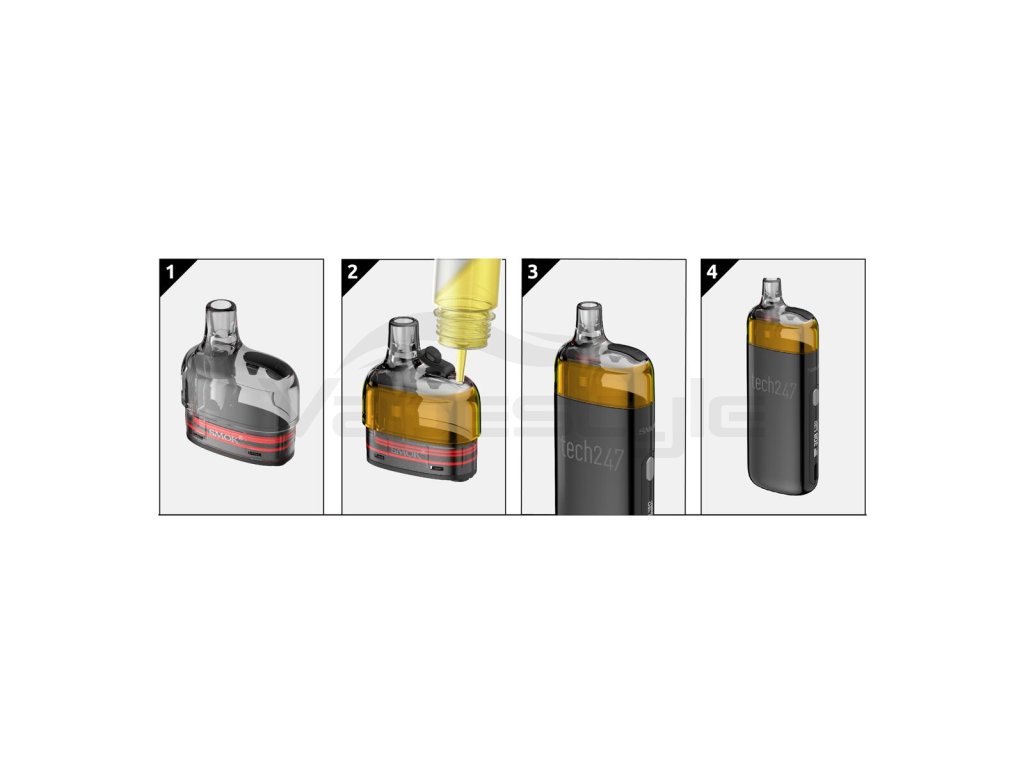 Už žádné starosti s pracným odpojováním cartridge pro potřeby naplnění. U modelu Tech247 budete moci cartridge plnit přímo na těle baterie bez jejího odpojování. V horní části cartridge se nachází praktická silikonová záslepka, stačí ji jen odklopit a začít plnit. I přes velký objem cartridge 4ml ji zvládnete doplnit doslova za pár vteřin.