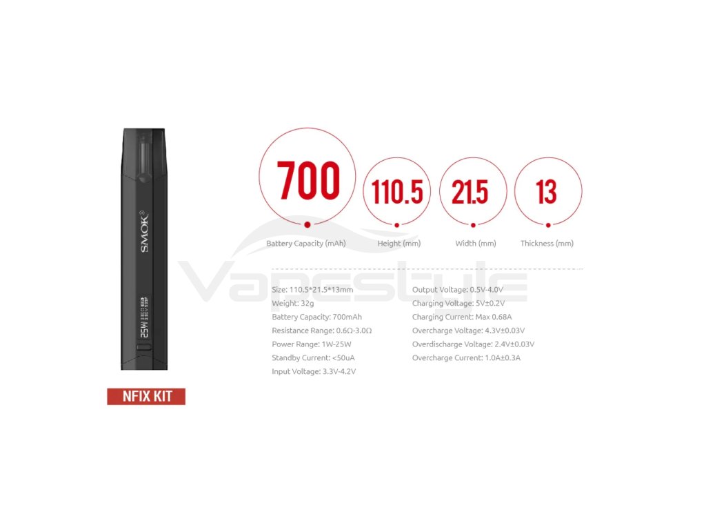 Pro svůj neotřelý design a přidanou hodnotou v podobě OLED displeje se elektronická cigareta Smoktech Nfix řadí mezi další All-in-one zařízení, u kterých se nemusíte vůbec o nic starat. Byla navržena s důsledkem využití každé části a tak není divu, že její váha je pouhých 32g a její rozměry 110,5 x 21,5 x 13mm jsou vskutku kompaktní. Vejde se tak do každé ruky a její pohodlné přenášení například v kapse je samozřejmostí.