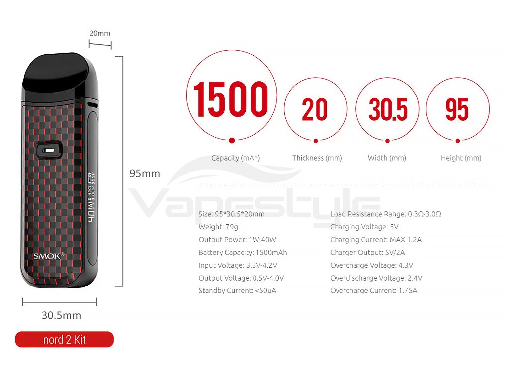 Smoktech Nord 2 - Pod Kit - 40W 1500mAh - Black Stabilizing Wood