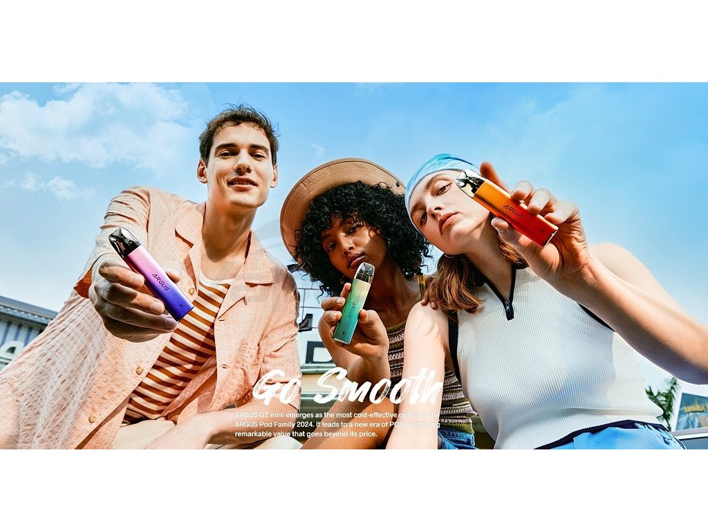 Výrobce VooPoo přichází s inovovanou verzí oblíbeného modelu G2 Mini, která nese označení G2 Mini+. Tato vylepšená verze přináší zvýšenou kapacitu baterie a ještě lepší výkon pro náročnější uživatele. VooPoo Argus G2 Mini+ je kompaktní a výkonná elektronická cigareta pro MTL/RDL styl vapování, ideální pro každodenní nošení, která nabízí vynikající poměr ceny a výkonu a je vybavena vylepšenou baterií o kapacitě 1500 mAh, poskytující o 25 % více energie než původní model po celý den i při náročnějším používání. Díky svému ergonomickému designu a lehké konstrukci z hliníkové slitiny padne pohodlně do ruky a její intuitivní ovládání zaručuje snadné používání i pro začátečníky, navíc disponuje nastavitelným přívodem vzduchu (Airflow) pro personalizaci vapovacího zážitku, automatickou regulací výkonu v rozmezí 5-30 W (dle použité Pod Cartridge) a inteligentními ochrannými funkcemi pro bezpečné používání, jako je ochrana proti přehřátí, zkratu a nadměrnému vybíjení baterie. Díky Pod Cartridgím s objemem 3 ml a odporem 0,7 ohm nabízí bohatou produkci páry a zároveň dostatečnou zásobu e-liquidu pro dlouhodobé vapování.
