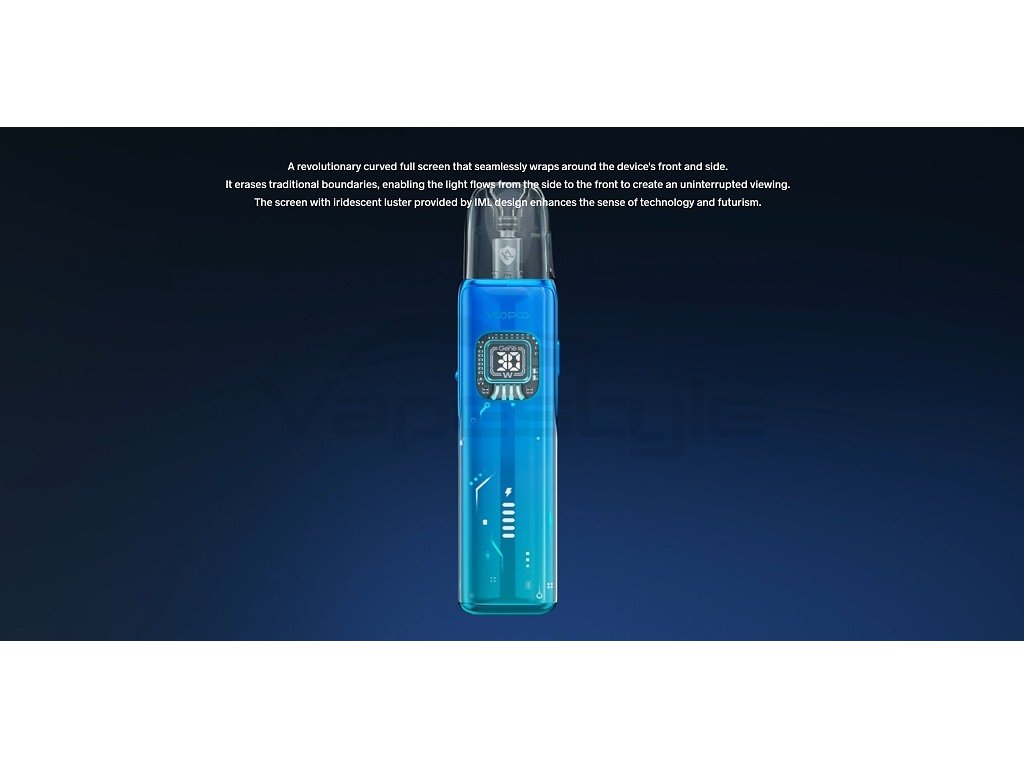 Curved Full ScreenRevoluční zakřivený displej se bezešvě obtéká kolem přední a boční části zařízení. IML film design poskytuje futuristický kovový lesklý povrch s metalickým duhově prašným efektem. Displej zobrazuje všechny důležité informace včetně výkonu, stavu baterie a režimů vapování. |