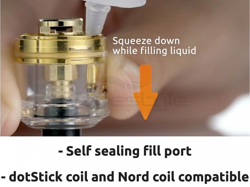 Objem Clearomizeru nabízí 2 ml zásobního prostoru pro Váš oblíbený e-liquid. Plnění je velmi snadné a probíhá pouhým zatlačením a pootočením průhledné části Clearomizéru proti směru hodinových ručiček, čímž dojde k odejmutí zásobníku, který lze poté jednoduše naplnit. Plnící otvor se nachází ihned vedle žhavící hlavy, jejíž výměna probíhá stejným postupem a je také velmi jednoduchá. Samozřejmostí je pak možnost plynulého nastavení přívodu vzduchu ke spirálce podle vlastní potřeby a použitého stylu vapování.