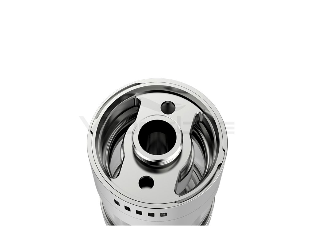 Ve vrchní části se nachází i vylepšený přívod vzduchu pro optimální prožitek z Vapingu. Celý Clearomizer je plně rozebíratelný a vyrobený z nerezové oceli a Pyrexu. CUBIS Pro Vás překvapí novými atomizery LVC Clapton (úprava přívodu liquidu ke spirálce) a QCS (snadná výměna bavlny při zachování nerezové trubičky s vyfrézovanými otvory (Notchcoil). Opět se můžeme spolehnout i na atomizery řady BF, BF Clapton, režim VW a BF SS316, který lze využit pro režim nastavování teploty. V balení je přibalen i další náustek, u kterého je vnitřní část spirálovitého tvaru (ochrana proti případnému prskání liquidu do úst).