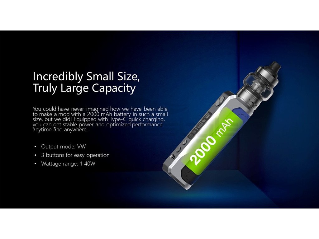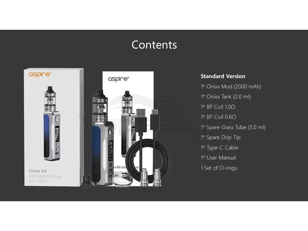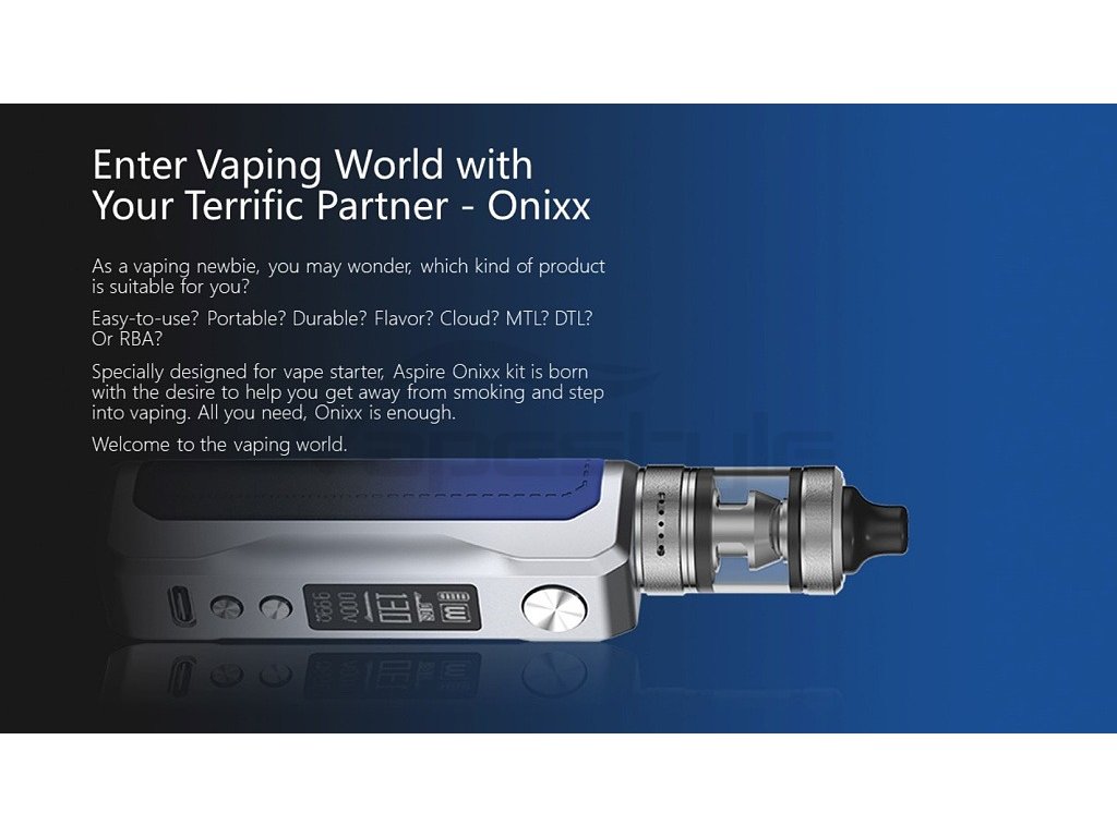 Nádherně zpracovaný elektronický grip ze zinkové slitiny od firmy Aspire, v SETU s Clearomizerem Onixx s kapacitou 2ml, který je vhodný jak pro MTL, tak i DL vapování. Maximální výkon 40W, rychlé USB-C nabíjení, integrovaná baterie s velkou kapacitou 2000mAh, ASP Chipset, OLED displej 0.87”, podpora režimu VW, závit 510.