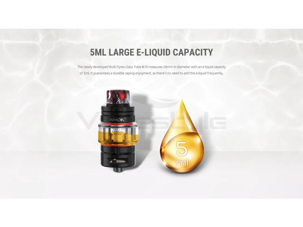 Samotnou kapitolu pak představuje Nízkoodporový Tank clearomizer Smok TFV16 Lite, který je součástí tohoto setu. Clearomizer Smoktech TFV16 disponuje objemem celých 5ml zásobního prostoru pro e-liquid. Zároveň s tímto clearomizerem přichází zcela nové žhavící hlavy nesoucí stejné označení TFV16, které jsou osazeny hitem poslední doby, a to Mesh spirálkami, díky kterým se dá dosáhnout opravdu velké produkce páry. Samozřejmostí je pak možnost regulace přívodu vzduchu. Průchod může být také téměř celkově uzavřen. Díky tomu to provedení je Smok TFV16 primárně určen pro oblíbený styl přímého potahování DL, nicméně v kombinaci se správně zvolenou žhavící hlavou a při vyšším omezení přívodu vzduchu lze snadno použít i pro klasický styl MTL, kdy potahujete jako z klasické cigarety. Plnění e-liquidem je rovněž velmi praktické a probíhá pootočením horní části clearomizeru proti směru hodinových ručiček, kde se skrývá samotný otvor pro plnění.