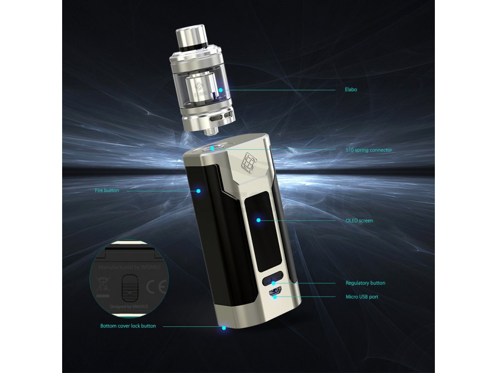 ![]() | Clearomizer Wismec ElaboTento SET obsahuje i nový Clearomizer Elabo s oblíbeným jednoduchým systémem horního plnění e-liquidem. Pro optimální kouřivost lze využít spodní regulaci přívodu vzduchu (Air Flow). |
