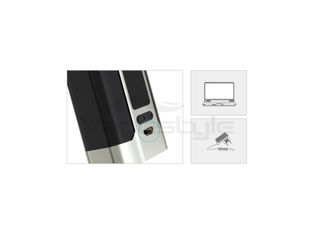 Na spodním micro USB vstupu došlo k pochromování kontaktů, což má za nísledek rychlejší nabíjení. Vedle klasického VW modu máte na výběr z teplotních režimů TC-Ni, Ti, SS a TCR.