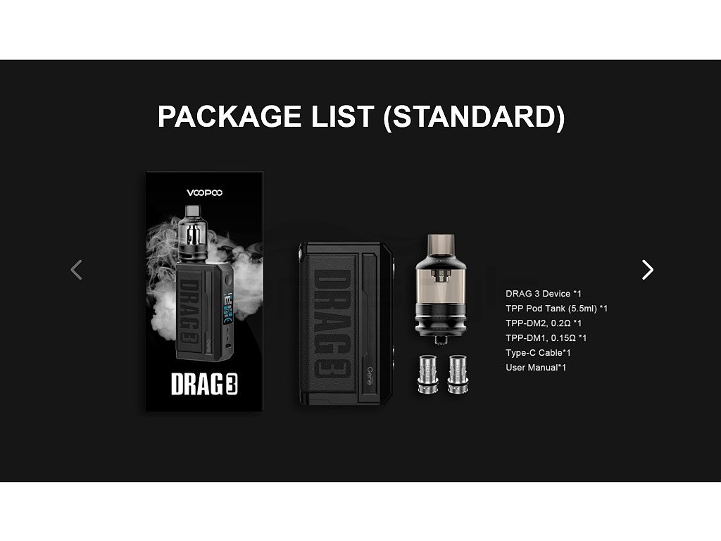 VOOPOO DRAG 3 - 177W - Full Grip s TPP Pod Tank (Smoky Grey)