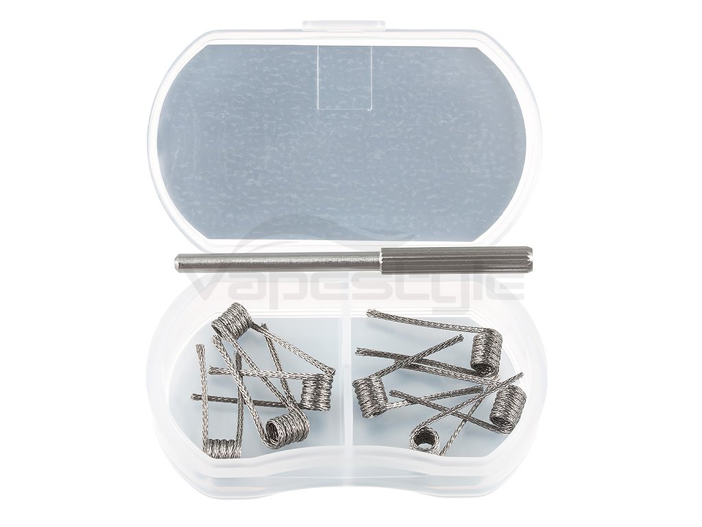 Jedná se o 8ks speciálně namotaných spirálek, které jsou uloženy v praktickém úložném boxu. Připraveny jsou pro vás brilantně namotané spirálky Alpha Braid, které svými konstrukčními vlastnostmi uspokojí i ty nejnáročnější vapery.