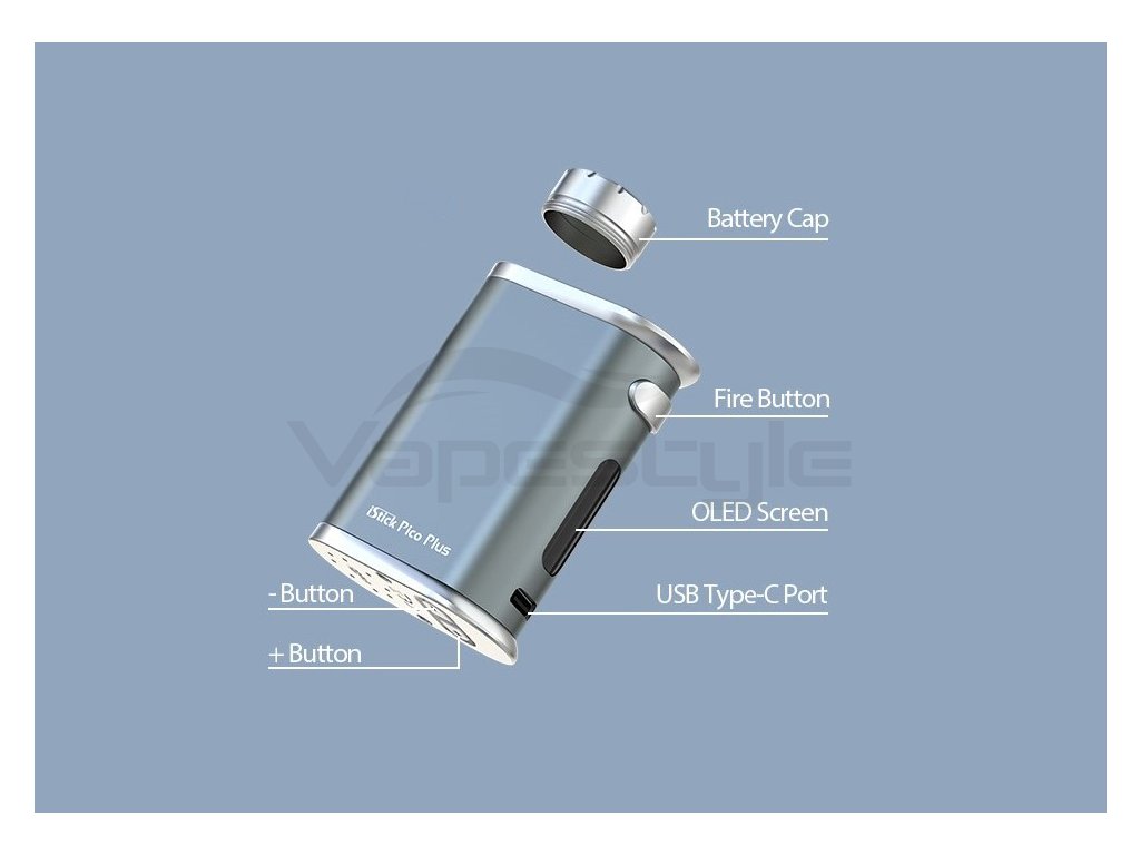 Nástupce oblíbeného iStick Pico, tentokrát s přívlastkem Plus. Vysoký nastavitelný výkon až 75W, na baterie typu 18650, rychlé USB-C nabíjení, OLED displej, závit 510. Baterie nejsou součástí balení. Barevné provedení Black.