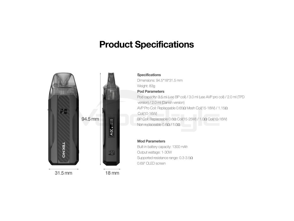 Aspire Tekno - Pod Kit - 1300mah (Gunmetal Serpeggiante)