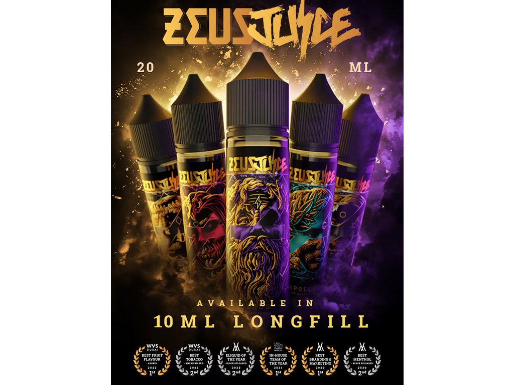 "Od té doby Zeus Juice stojí hrdě na vrcholu Olympu a dodává vaperům nadpozemskou sílu, aby se dokázali odvrátit od klasického kouření. Obrázek každé lahvičky poskytuje okno k zázrakům, které se nachází uvnitř, z nichž každý je reprezentován svým vlastním božstvem. Každá příchuť má hlubokou symboliku a vypráví příběh, stejně jako má svůj příběh každý vaper na své vlastní cestě k vítězství..."