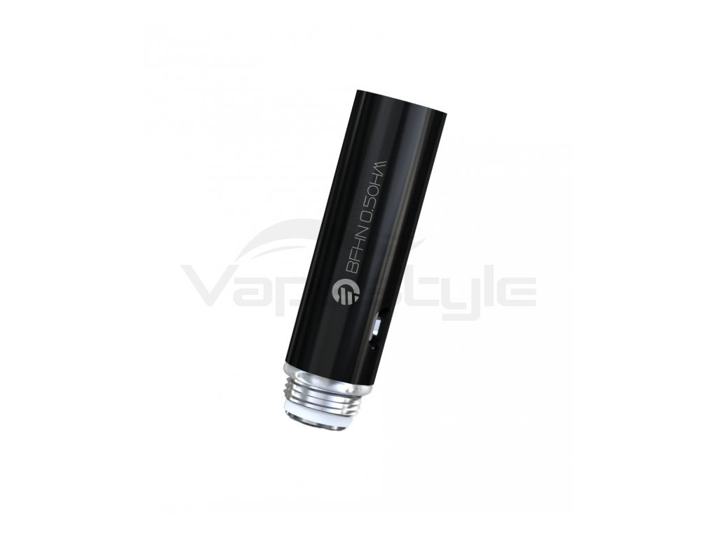 Náhradní žhavící tělísko BFHN nabízí odpor 0,5 ohm. V jádru se nachází jedna spirálka pro jemné podání chuti a příjemnou kouřivost. Tělísko je konstrukčně navrženo pro co nejvýraznější podání chuti. Výborné snáší i silnější náplně s vysokým obsahem nikotinu. Je schopné pracovat s e-liquidy se 60% podílem PG složky. Tělísko BFHN je určeno pro klasické šlukování (MTL).